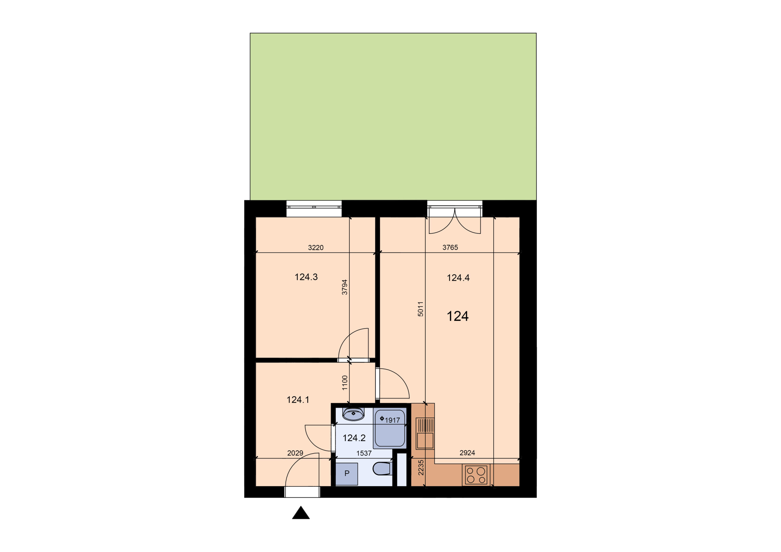 124.2Koupelna + WC3,7 m²